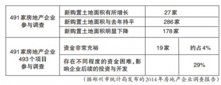 491家房企中,拿地面積增長的有27家在對鄭州全市房地產企業一季度經營情況進行問卷調查后,統計部門得出結論:491家參與調查的房地產企業中,只有約4%的企業資金非常充裕;27家新購置土地面積有所增長。