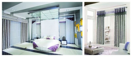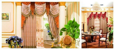 歐式風(fēng)格的家居裝修豪華氣派,窗簾的花型可選擇歐式經(jīng)典紋樣,突出華麗大氣。工藝上多為提花或繡花織物,布面立體感強(qiáng),比較有檔次。