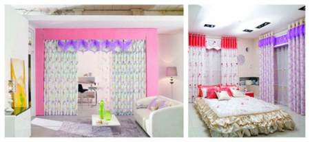 時(shí)尚風(fēng)格突出一種溫馨和浪漫,窗簾的花型可選擇以花卉、植物為原型的現(xiàn)代抽象圖案。面料以印花布或爛花布為宜。