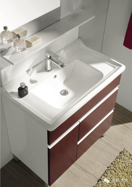 浴室柜的臺面選擇一定考慮到其耐用性、易潔性,東鵬潔具仿古浴室柜主要采用天然大理石臺面,其質地堅硬、防腐防刮花,且高檔大氣,易于打理;現代柜主要采用一體式陶瓷臺盆,1250度高溫燒制,超平滑并且便于日常清潔。