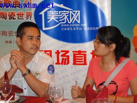 意美家衛浴陶瓷世界董事長陳偉強(左)接受美家網采訪