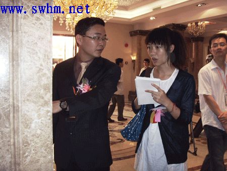 【余顯達】:本次是公司首次參展,我們展位的熱鬧是大家有目共睹的。公司已推出的“托斯卡納”滾筒印花磚。半拋之“印第安砂巖”、“馨香霞韻”、“亞馬遜”。全拋之“象牙米黃”、“西班牙米黃”、“地脈巖”“路易十三”等等各大系列的高檔墻地磚,以高品位、高品質、完善配套吸引消費者的注意。