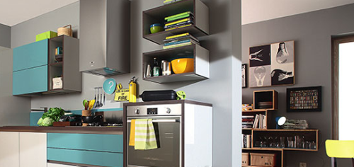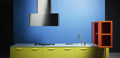 如果你擔心大面積色彩的使用時間久了會看膩,那不如嘗試著像Veneta Cucine意大利威乃達櫥柜一樣用局部跳色的方法,在大面積的白色櫥柜上點綴幾塊彩色的門板,廚房的表情很容易豐富起來,廚具的挑選也可以配合起到畫龍點睛的功效!