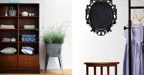 裝飾搭配的藝術:單純的收納如果難以達到裝飾的效果,不妨另外搭配一些裝飾性的小物,可以烘托出收納的美觀。日式復古多格衣櫥邊上加上一個綠植盆栽,清新雅致的效果加倍;簡約的衣架旁邊搭配同色系的復古藝術鏡面,則更添高雅。