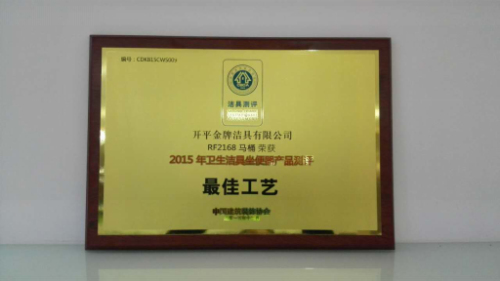 2015年度金牌衛浴所榮獲的“金馬桶—最佳工藝”殊榮牌匾