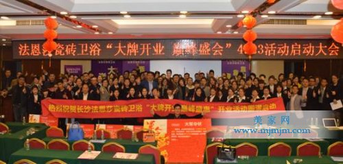 2016年3月24日,以“大牌開業(yè) 巔峰盛惠”為主題的湖南長沙法恩莎瓷磚雙店開業(yè)活動(dòng)啟動(dòng)大會(huì),在長沙興湘國際商務(wù)酒店盛大召開!此次會(huì)議以法恩莎瓷磚四維一體•TOP行動(dòng)為主導(dǎo),法恩莎湖南區(qū)域40多名經(jīng)銷商共聚一堂,一場(chǎng)聲勢(shì)浩大的啟動(dòng)會(huì)正式拉開序幕,活動(dòng)現(xiàn)場(chǎng)氣氛空前熱烈。