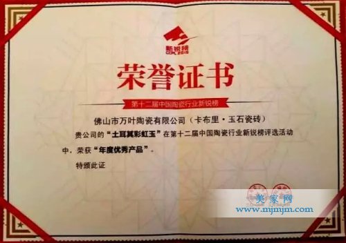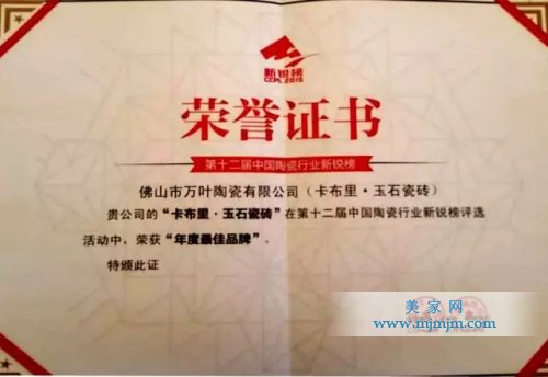 品牌力,是企業積累下來的誠信聲譽,是巨大的無形資產。卡布里•玉石瓷磚在一年多的時間內,榮獲年度最佳品牌,乃是卡布里營銷力、產品力、服務力多方面力量的綜合表現。