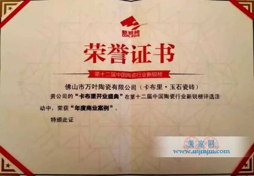 新銳榜五大獎項的獲得,無不證明卡布里•玉石瓷磚在品牌、產品、營銷、展廳各方面的輸出都堪稱完美。2015年卡布里收獲豐盛,在2016年卡布里也將以全新的“玉石瓷磚明星豪宅”面貌,進軍高端空間;登陸五大衛視,提升品牌認知度;深化代理商年度服務計劃,在終端市場大有所為......
