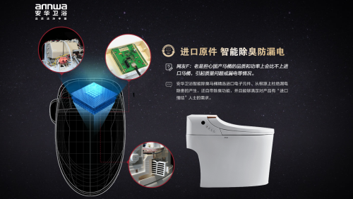 解決方案:安華衛浴智能除臭嗎精選進口電子元件,從根源上杜絕漏電隱患,還自帶除臭功能。滿足有“進口情結”人士的需求。