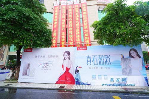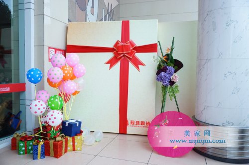 除了賺足眼球的大禮盒,還有10個2米高的禮盒分布在華夏陶瓷城及周邊地區各個醒目的地方;在冠珠總部大門口兩側,分別有一個“中國風” 和“清新簡約”的“瓷磚禮盒”,可以說,今天,華夏陶瓷城被冠珠禮盒“承包”了。
