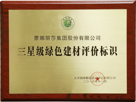 2016年12月16日,廣東陶瓷協會、國建聯信認證中心在佛山市正式發布首批獲得建筑衛生陶瓷三星級綠色建材評價標識獲證企業。蒙娜麗莎等25家企業成為首批獲得綠色認證企業。國家綠色建材評價管理辦公室主任劉敬疆、中國建材聯合會綠色低碳建材分會副理事長兼秘書長、國建聯信認證中心總經理武慶濤,廣東陶瓷協會會長陳環等嘉賓領導及25家獲證企業代表出席了發布會。