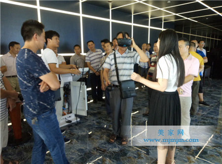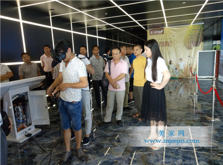 在VR展示區內,不時傳來參觀團驚嘆的稱贊聲。通過VR技術,參觀團享受到什么叫沉浸式的實時換磚體驗,身臨其境地體驗更全面、更直觀、720度全方位的現場換磚系統,提前感受稱心如意的未來家。