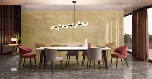 道格拉斯Extended超級板材以天然大理石為藍本,利用高清3D噴墨打印技術真實還原天然石材紋理,大面積鋪貼瓷磚,留縫少、縫隙小,無論縱向還是橫向鋪貼,可實現無縫銜接效果,順勢成為設計師們“新寵”。