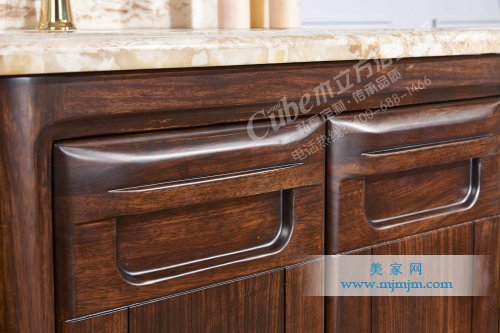 木立方實木浴室柜采用中國十環認證水性漆,自然環保,四層底漆,三層面漆,只為打造安全環保的浴室柜。