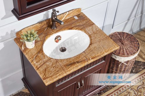 選用天然大理石,硬度好,使用壽命長,紋理自然古樸,經過加工后表面光滑如鏡,與浴室柜紋理配合,彰顯典雅氣質。