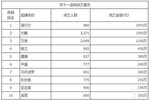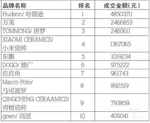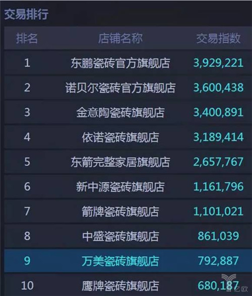 2014年天貓雙十一瓷磚類目排名