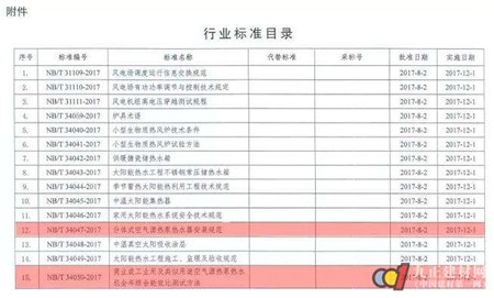 8月4日,國家能源局發布公告(2017年第8號),由中國節能協會組織起草的《分體式空氣源熱泵熱水器安裝規范》(標準號:NB/T34047-2017)、《商用或工業用及類似用途空氣源熱泵熱水機全年綜合能效比測試方法》(標準號:NB/T34050-2017)二項標準正式批準發布,將于2017年12月1日實施。