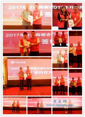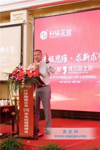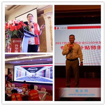 下午的激情洋溢的課程結(jié)束后,晚上在蕭山賓館舉辦了盛大的答謝晚宴。晚宴前,升華陶瓷企業(yè)市場(chǎng)部總監(jiān)任飛、市場(chǎng)部空間設(shè)計(jì)主管李龍輝給大家?guī)?lái)了《升華企業(yè)超級(jí)行銷3×3培訓(xùn)體系》和《2017升華、威廉頓終端VI形象》的專題宣講以及企業(yè)總經(jīng)理張蜜敬先生再次給大家詳細(xì)解讀專賣店裝修補(bǔ)貼的政策,宣講過(guò)后,舉行了簽約儀式。