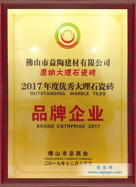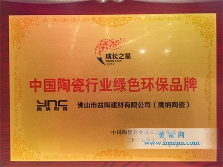 在2017年,10月YNC(鷹納陶瓷)榮獲“第五屆中國意大利陶瓷設計大獎賽”優秀獎,12月更是榮獲“中國陶瓷行業綠色環保品牌”“2017年度優秀大理石瓷磚品牌企業”雙料桂冠,是鷹納陶瓷誠信經營,堅守品牌,不斷創新的結果,是行業對鷹納陶瓷2017年取得成績的高度認可,將激勵全體鷹納人更加奮發努力。