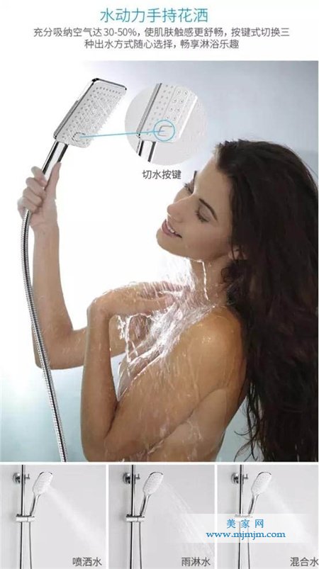 雨淋水,水流清爽柔和,帶給你們天然雨淋般的沐浴享受;混合水,水流急湍,可以起到按摩放松的作用;噴灑水模式,水流最為強勁。三種不同的噴水方式任意挑選。讓你隨時保證新鮮感。