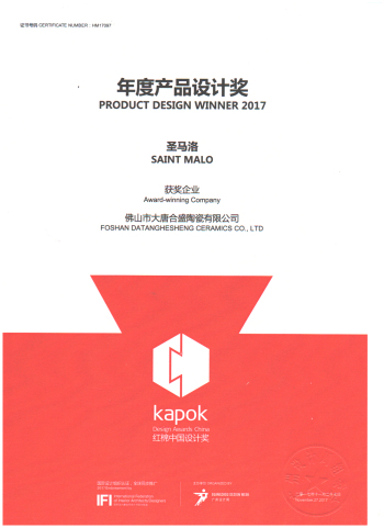 大唐合盛瓷磚現代亞光磚“圣馬洛”榮獲紅棉獎·2017年度產品設計獎