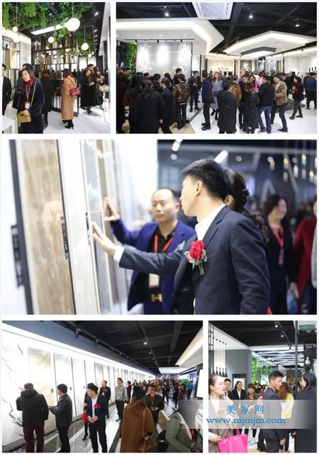 在章董事長的帶領下,一眾嘉賓步入期待已久的新展廳,金玉名家仿古大理石現代館的神秘面紗就此揭開!步入展廳,撲面而來的濃厚現代風格氣息充盈著整個展廳空間,簡約時尚的元素在這里得到完美演繹。這座氣勢恢宏的全新展廳,是由金玉名家專業設計師團隊傾情打造,讓現場嘉賓們都為之驚嘆。