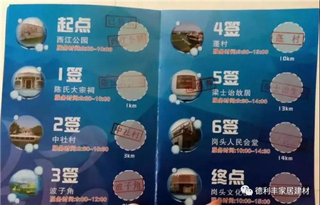 西江公園(起點)-- 陳氏大宗祠(一簽)-- 中社村(二簽)-- 波子角(三簽)-- 蓬村(四簽)-- 梁士詒故居(五簽)-- 崗頭人民會堂(六簽)-- 崗頭文化樓(終點)