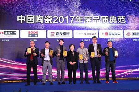值得一提的是,首屆(2017)中國陶瓷品質榜亦在大會期間隆重揭幕,本著客觀公正的準則,以媒體的觀察視角,集中表彰一批在2017年表現卓越的建陶產區、陶瓷企業及品牌,頒發“中國陶瓷2017年度創新產區”、“中國陶瓷2017年度產品創新品牌”、“中國陶瓷2017年度質量創新企業”、“中國陶瓷2017年度明星品牌”、“中國陶瓷2017年度設計創新品牌”、“中國陶瓷2017年度品牌典范”、“中國陶瓷2017年度風尚品牌”、“中國陶瓷2017年度品質典范”、“中國陶瓷2017年度影響力企業”、“中國陶瓷2017年度裝備技術創新企業”十大獎項。