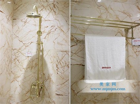 為了凸顯低調的奢華質感,淋浴房的門鉸和拉手均采用了玫瑰金色,搭配不銹鋼色,在華麗中更平添幻彩時尚;門鉸材質內、外表里如一,大理石擋水邊和10mm玻璃(可定制),都是材質過硬的體現。而淋浴房內,如果你看膩了不銹鋼色的花灑和毛巾架,那不妨選擇一套鋯金色的來轉換下心情。仿如純金的質感,不但讓衛浴間更加熠熠生輝,也讓淋浴時更多了幾分奢華感受。