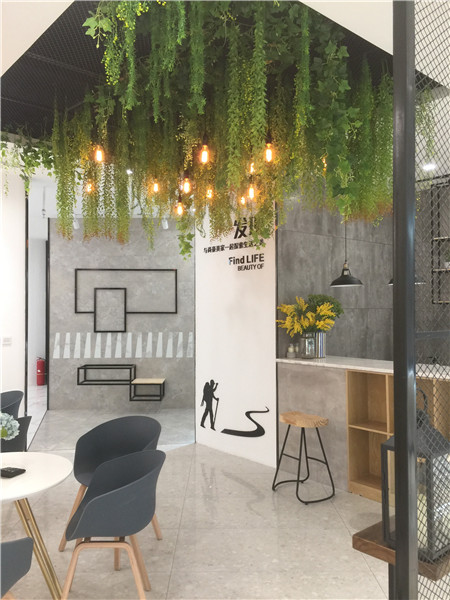 謝金坤:對于展廳的要求是視覺上的干凈有序,呈現了對產品的聚焦導向,同時并不缺少豐富的視覺氛圍。在與總部設計師在設計方案的探討,也是不斷修正,希望在空間的展示上是以人為本的。舒適的光度、簡煉的線條、休閑的氛圍一直是尚豪美家設計總部與我在這個過程中最看重的內容,保持住現代磚低調舒適格調,實現空間與瓷磚元素的水乳交融。最終,現代極簡館呈現出了我們共同期待的樣子,也很感激尚豪美家總部的支持。
