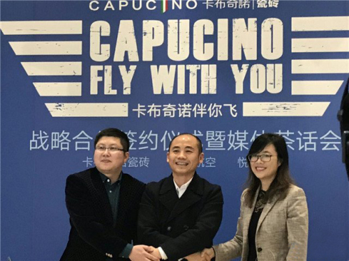 1月26日,卡布奇諾瓷磚與南方航空、悅航傳媒在佛山簽署戰(zhàn)略合作協(xié)議,卡布奇諾瓷磚總經理李志斌、南方航空公司代表張智軍以及悅航傳媒公司代表郭穎,出席本次戰(zhàn)略合作簽約儀式。