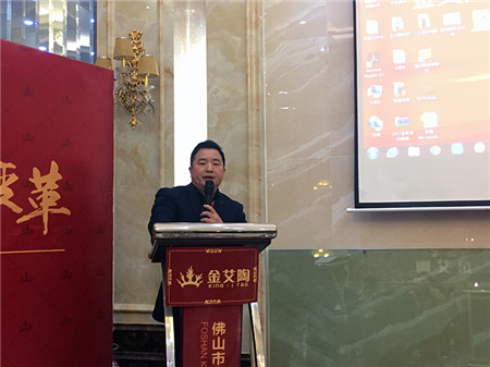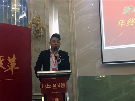 會議的最后,董事長劉鴻祥對金艾陶瓷磚品牌和員工提出了新的要求。劉董指出,在嚴峻的市場環境下,2018年金艾陶瓷磚品牌要在團隊、品牌形象、產品等方面作出改變和提升;同時,他希望每位員工要有危機意識,要跟上公司發展的步伐,注重個人能力的提升。在劉董一番發人深省的講話后,每一位金艾陶人內心都激動異常,對2018年的新征程充滿了信心與責任。