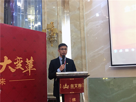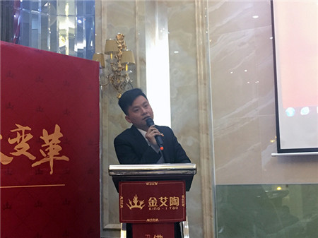在會上,金艾陶瓷磚營銷總經理羅勝作總結性發言,他總結概括了會議上各部門主管提出來的建議與要求,坦言感慨良多。