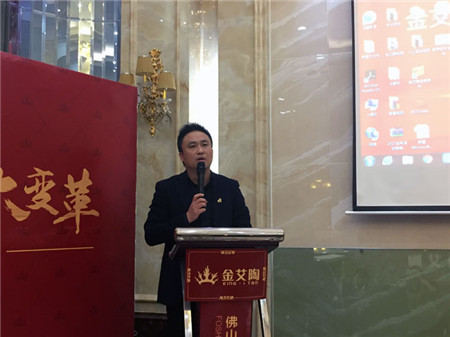 2018年1月27日下午,金艾陶瓷磚2017年總結暨表彰大會在金艾陶瓷磚總部展廳隆重舉行,金艾陶瓷磚董事長劉鴻祥、艾陶制釉總經理劉鴻興、營銷總經理羅勝、營銷總監劉鴻瑞、市場總監劉小良等公司領導、各部門主管及員工共聚一堂,總結過去規劃未來。