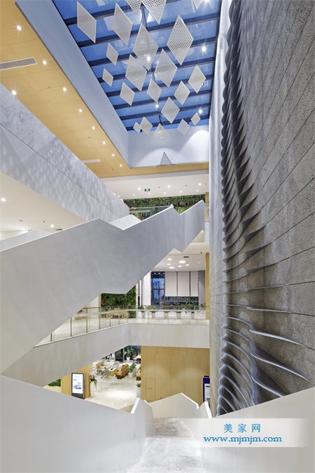 在具體的室內空間設計中,我們使用了大量的方形菱形的元素,通過平面構成立體構成等手法讓空間顯得更加與眾不同,充滿科技感現代感。讓空間成為激發創意與靈感的源泉。