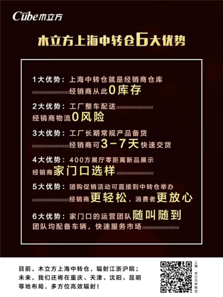 高端的展示設計、競爭力十足的產品實力、專業的精英團隊,加上與三維家戰略合作、高鐵廣告投放,都將成為木立方在上海中轉倉獲得廣大客商青睞的助力!