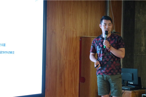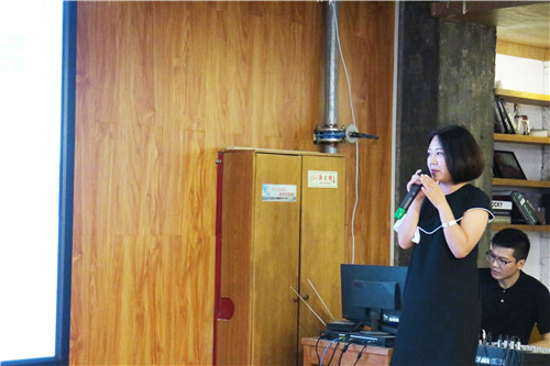 徐州芒果瓷磚總經理郭娜女士在中期驗收匯報開始之前呼吁大家積極參與2018芒果獎。