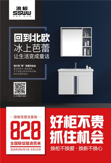 8月3日-8月28日,浪鯨828全國(guó)聯(lián)促“好柜不貴 抓住機(jī)會(huì)”踏浪而來。據(jù)了解,浪鯨衛(wèi)浴為了提升消費(fèi)者的使用體驗(yàn),讓更多消費(fèi)用戶享受高品質(zhì)的生活,此次浪鯨828全國(guó)聯(lián)促活動(dòng),主推的高端產(chǎn)品“回到北歐”系列浴室柜,能帶你穿梭于北歐的神秘浪漫,把北歐元素融入生活,讓生活變成童話。