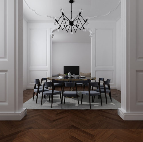 羅馬柱是歐式裝修中一個標志性元素,而不是簡單的一種材料,細膩流暢的紋理線條,極具歐式韻味。而灰藍色的餐椅和木質地板不但使整體空間色調清新自然,同時在視覺效果上給人一種舒適自然的感受,使整個空間氛圍得到極大提升,彰顯其簡歐典雅氣質。