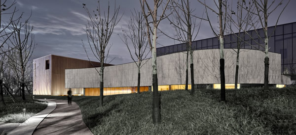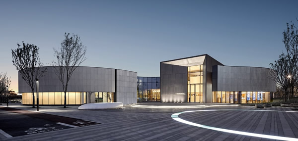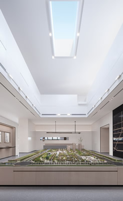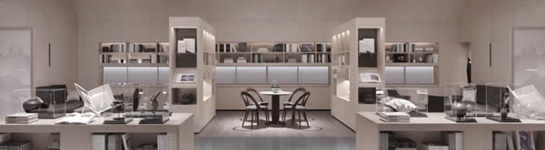 這既是個從建筑到室內再到景觀都是按照永久的圖書館來設計的售樓處,也是一個按照小型圖書館的使用方式來處理動線的圖書館,二者同時存在,一枝二花,一體兩面。