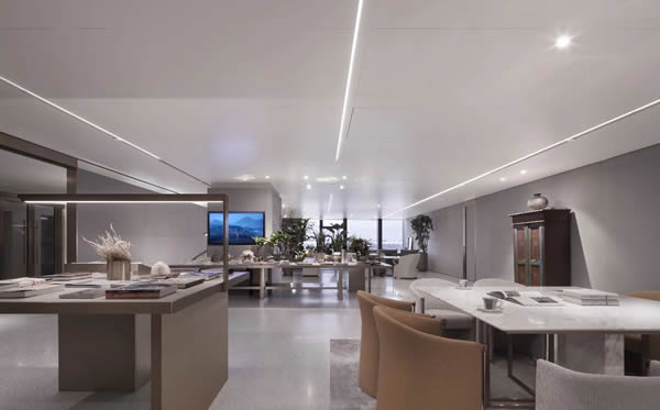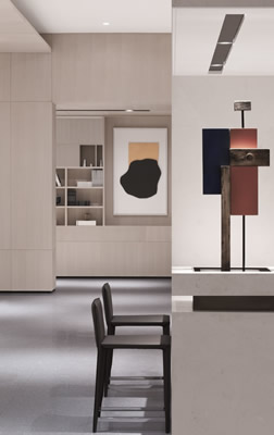 他在作品中,將當代性、文化性、藝術性共溶共生,以此作為設計語言表達空間。在藝術與生活的交錯、和諧處,追求設計的本質,其作品更注重于線條、矩形、留白,韻味無限。