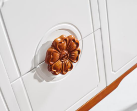 實木花朵造型拉手設計,造型唯美大氣,手工雕刻細致,