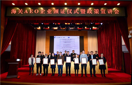 2019年3月12日上午,佛山海關駐南海辦事處舉辦了近年來最大規模的政策宣講活動,包括蒙娜麗莎集團股份有限公司在內的9家企業獲頒海關高級認證(AEO)證書。獲頒證書的企業,不僅今后通關更加便利,還可享受稅務、銀行、發改委等39個部門的“聯合激勵”政策。
