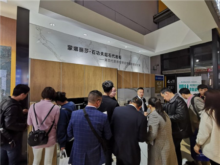 而在蒙娜麗莎展位門口,運(yùn)用新品七星珍石系列制作的櫥窗設(shè)計展示,時尚的風(fēng)格搭配高檔的珍石設(shè)計,吸引了眾多客戶停下腳步觀看拍照留念,為本次觀展添加一個精美的亮點(diǎn)。同時在展位上,蒙娜麗莎瓷磚還將大板的家居應(yīng)用場景延伸到更多的可能性上,從臺面板復(fù)合工藝、大板工藝品、洗手臺無縫工藝、浴缸無縫工藝、樓梯踏步工藝等,務(wù)求將家居延伸的可能性發(fā)揮到極致。