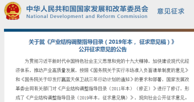 發(fā)改委發(fā)布《產(chǎn)業(yè)結(jié)構(gòu)調(diào)整指導(dǎo)目錄(2019本,征求意見(jiàn)稿)》