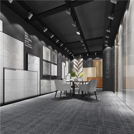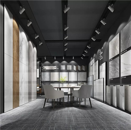 同時展示大理石、木紋磚、瓷片等