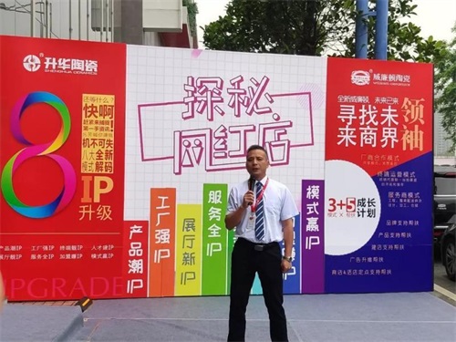 在直播開(kāi)始前,升華陶瓷國(guó)內(nèi)事業(yè)部總經(jīng)理張飛上臺(tái)發(fā)言,感謝各界朋友以及媒體朋友們的大力支持,并重點(diǎn)提到升華在陶博會(huì)期間發(fā)布“八大IP”政策,同時(shí)陶博會(huì)期間,面向全國(guó)招商。