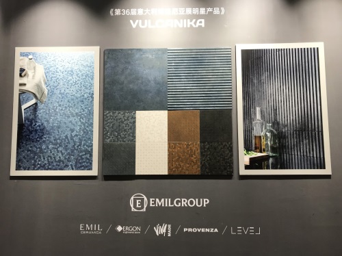 意大利EMIL埃米瓷磚,則以兩個(gè)意大利博洛尼亞展的明星產(chǎn)品——VULCANIKA火山石& YAKI 灼木,從意大利到中國(guó),再次成為展位上的備受矚目的亮點(diǎn)。兩款產(chǎn)品各具特色,通過混搭與立體模具,給設(shè)計(jì)帶來強(qiáng)烈的對(duì)比感與驚喜。