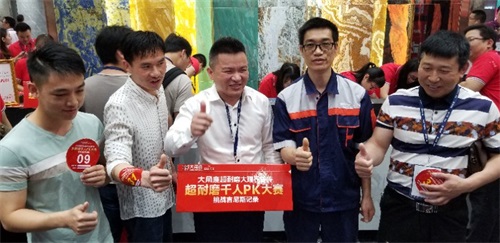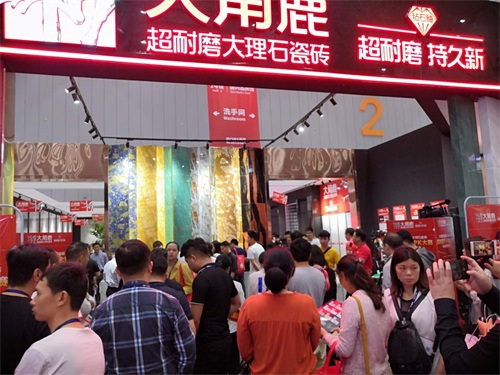 除了滿城都是大角鹿,大角鹿更是今年展位上最亮眼、最具人氣和影響力的品牌。大角鹿超耐磨千人PK大賽吸引了近千人參加,10萬多人通過新浪、騰訊等直播觀看了震撼的超耐磨PK大賽,共同見證每一片大角鹿超耐磨大理石瓷磚耐磨度是普通瓷磚的3倍,大角鹿,超耐磨! 真金不怕火煉,大角鹿,超耐磨!