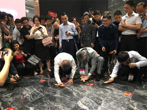 全球第一的釉料公司意大利卡羅比亞公司總經理Nazzario Di Mauro狄馬羅和大角鹿董事長南順芝一起參與大角鹿超耐磨PK大賽,南總通過用力刷和使勁踩鋼刷這種破壞力很強的動作告訴大家大角鹿到底有多耐磨。